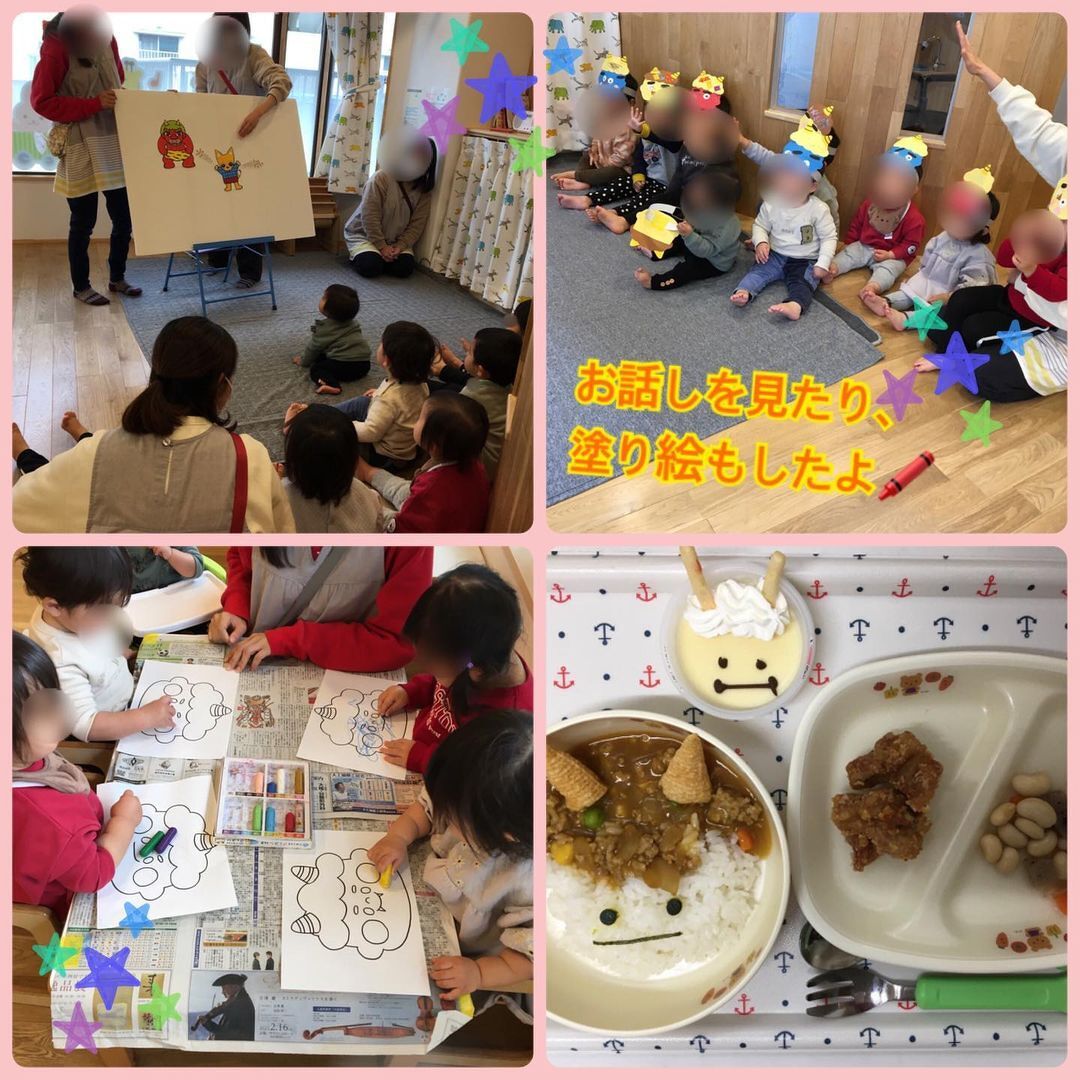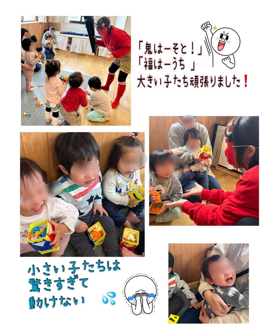 ✿ 節分 ✿ 節分の日、園に鬼さんがやってきた! 「鬼はー外!」 「福はーうち!!」 小さい子たちはびっくりして泣いてしまいました(;;) が、大きい子たちが頑張って豆を投げ、 鬼を退治してくれました! お給食の可愛い鬼さんはみんな笑顔で食べました★ 美味しかったね! インスタグラムも見てください☆ かわいい写真をたくさんアップしています! ぜひ遊びに来てください♪ #小規模保育園 #企業主導型保育園 #認可外保育園 #未満児保育 #園児募集中