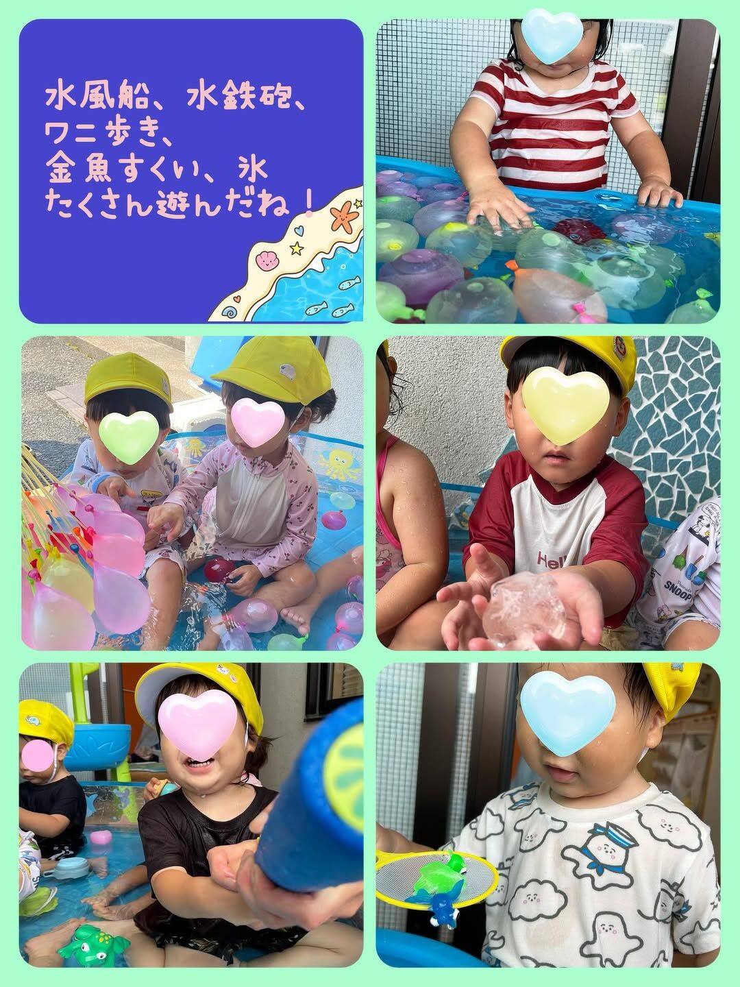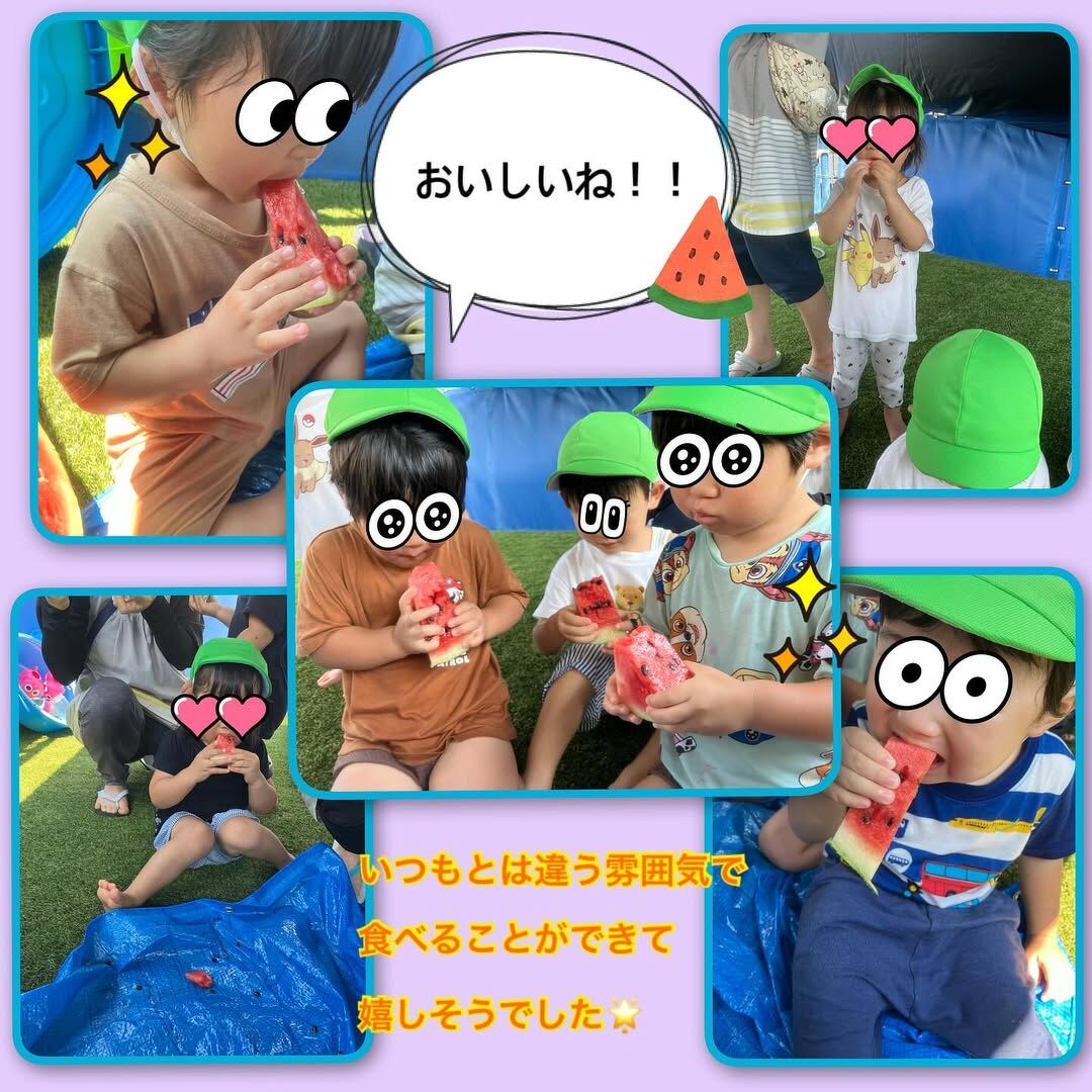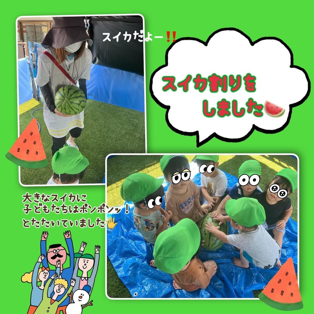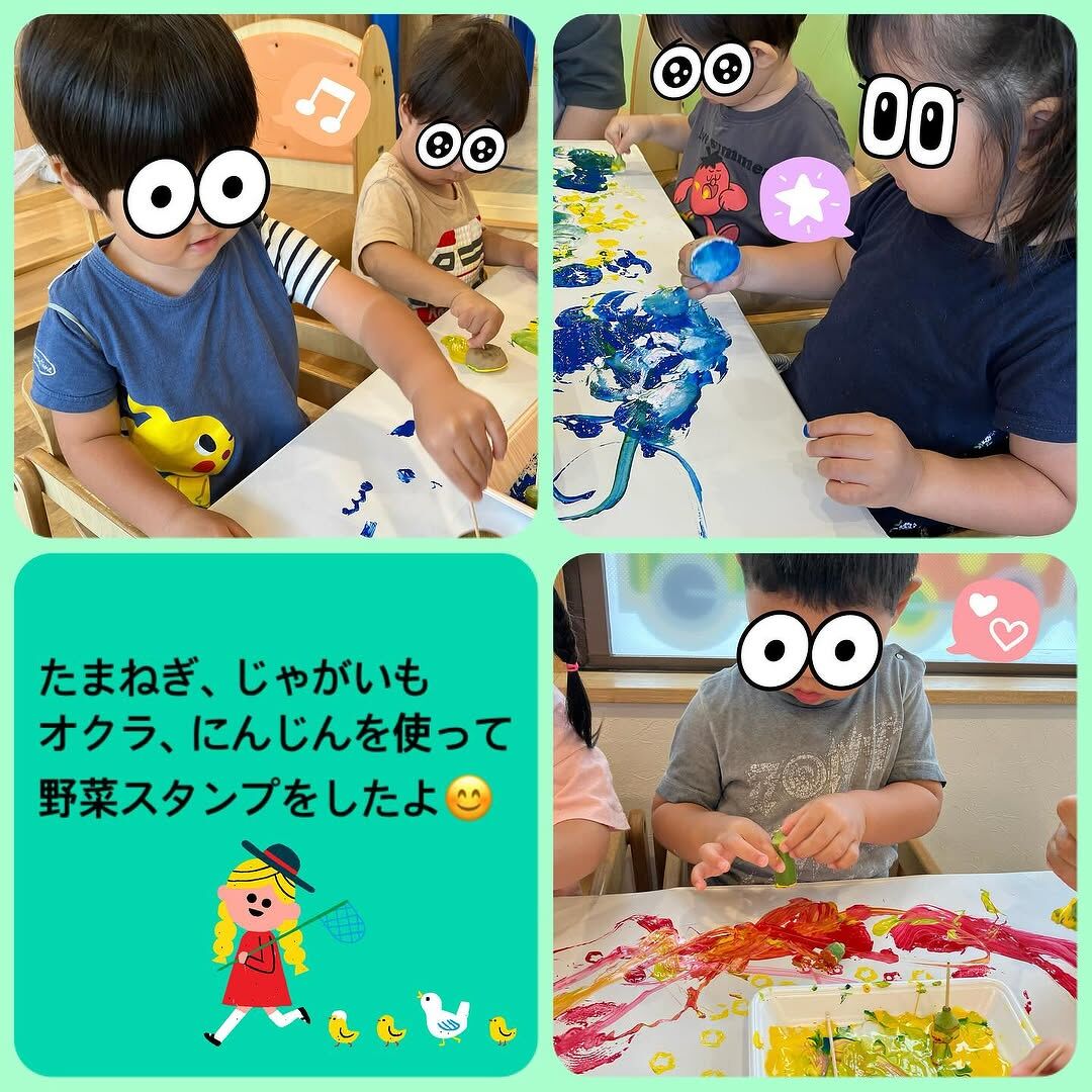今年の夏は、スイカ割りや野菜スタンプ、プールなど