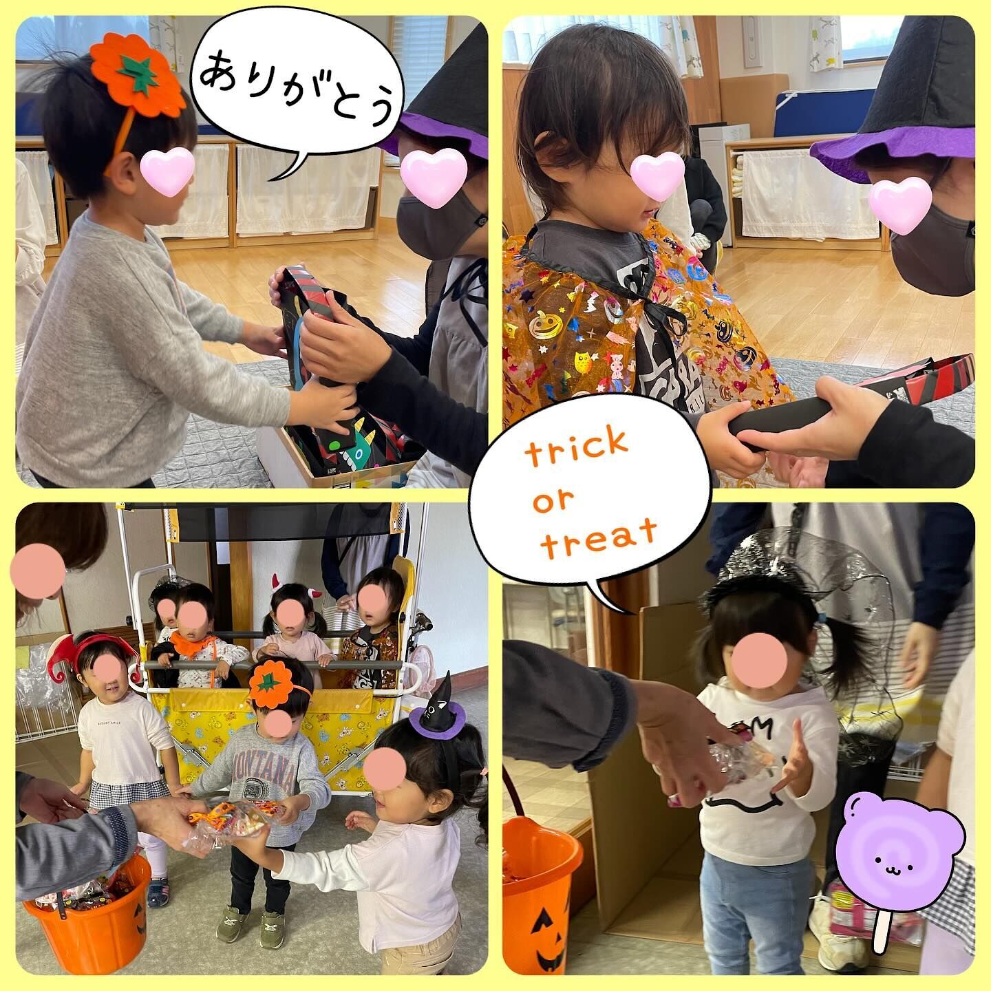✿ ハロウィン ✿ ハロウィンの日 飾りの付いたカチューシャや、 魚のお洋服を着たりして、 みんなで仮装しました♪ trickor treat ( ᜊº-° )ᜊ 給食やおやつもハロウィン* おいしいものいっぱい 食べて、もらえて うれしいね! インスタグラムも見てください☆ かわいい写真をたくさんアップしています! ぜひ遊びに来てください♪ ★★入園申込 随時受付中★★ 空きがある場合、随時園児募集中です! お気軽にお問合せ下さいませ♪ 0120-013-107
