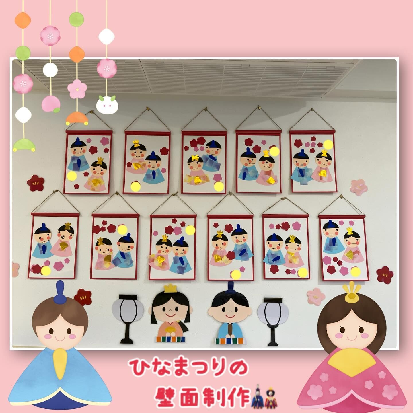 おおぞら保育園でも今日までひなまつりの壁面制作をしたり、